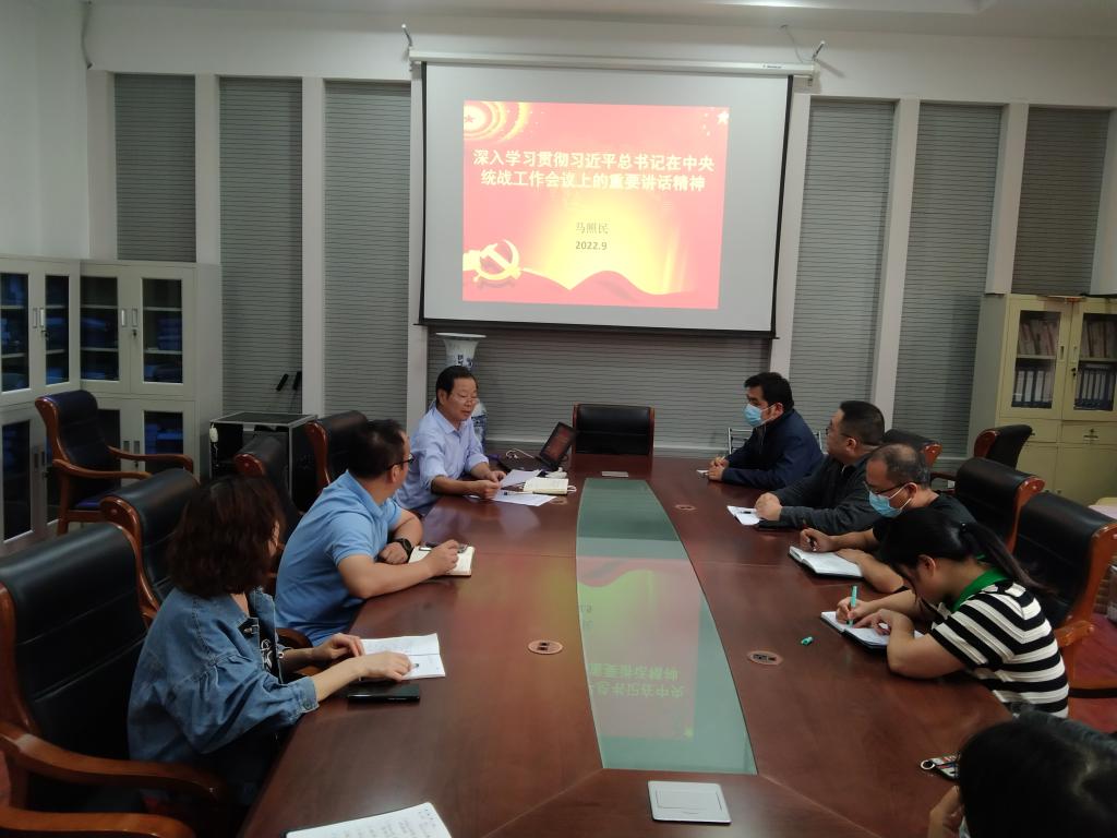 9月23日下午,伟德国际1946开展主题党课活动,深入学习贯彻习近平总书记在中央统战工作会议上的重要讲话精神,全体党员参会,非党员列席,会议由支部书记马照民主持。