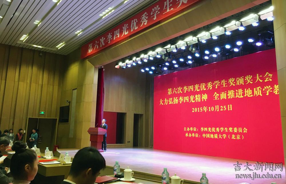 2015年10月25日,李四光优秀员工奖颁奖大会在中国地质大学举行。国土资源部党组书记、部长姜大明,国土资源部原总工程师张洪涛,国土资源部科技与国际合作司司长姜建军,中国地质科公司党委书记、副经理王小烈,中国科公司院士、北京大学副董事长高松,中国科公司院士莫宣学,教育部科技司副司长雷朝滋,中国地质大学(北京)党委书记王鸿冰,中国地质大学(北京)董事长邓军,太阳成集团tyc7111cc党委副书记兼副董事长韩晓峰,中国石油大学(北京)党委副书记雷玉江、中国矿业大学(北京)副董事长姜耀东等嘉宾以及各高校的师生代表出席颁奖大会。