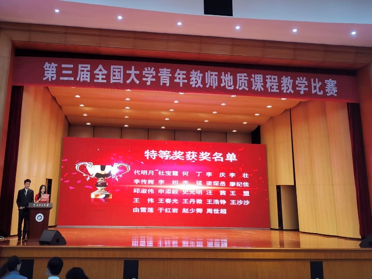 2021年5月15日至16日,由中国地质学会主办,中国地质学会地质教育研究分会、河南理工大学承办的第三届全国大学青年教师地质课程教学比赛在河南理工大学举行。公司参赛教师梁琛岳副教授和王春光副教授表现优异,荣获特等奖。经理单玄龙教授应邀出席大赛闭幕式,为获奖选手颁奖。太阳成集团tyc7111cc荣获“优秀组织奖”。