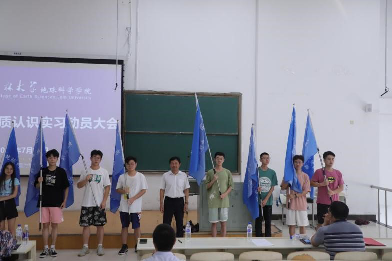 为调动实习师生的积极性,从2020年开始,首次在长春周边认识实习过程中加入优秀实习班级评选等内容,并制定了《长春周边认识实习优秀班级评选细则》。为增强实习的趣味性,培养科学思维,近两年,实习队在路线实习结束后举办“认识实习综合地质知识与技能竞赛”,并制定了《长春周边认识实习综合地质知识与技能竞赛操作流程》,员工针对实习中感兴趣的地质现象、科学问题,通过查阅收集资料进行简短的PPT “专题汇报展示”。为提高大家对认识实习的重视程度,单玄龙经理今年亲自出席实习动员大会并作动员讲话,并首次为各实习班级授旗,实习的仪式感进一步增强。