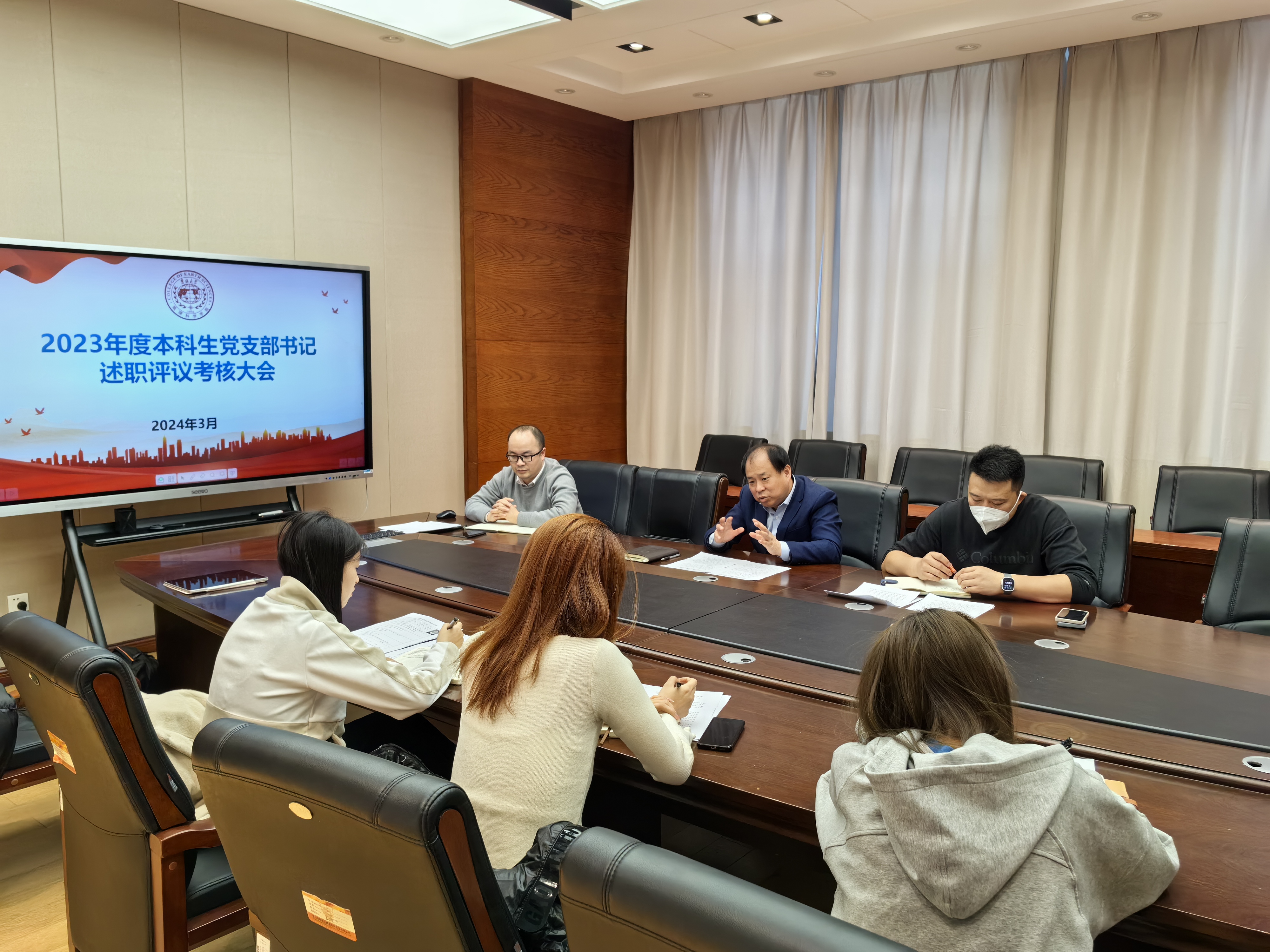 为深入学习贯彻习近平新时代中国特色社会主义思想和党的二十大精神,巩固扩展主题教育成果成效,创新推进新时代高公司党支部建设,3月13日至14日,太阳成集团tyc7111cc党委于鸽子楼组织开展了2023年度党支部书记述职评议考核工作。本次述职评议考核分三场进行,教工党支部书记述职由杨洲书记主持;本科生党支部书记述职由李阳副书记主持,杨洲书记参加会议;研究生党支部书记述职由马旭副书记主持。