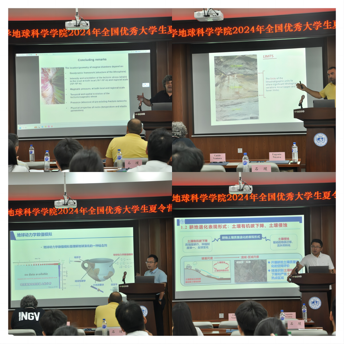 7月11日上午,为营员们安排了学术报告。来自意大利国家地球物理与火山研究所的高级研究员Guido Ventura、卡拉布里亚大学,生物、生态与地球科学系研究员Eugenio Nicotra、太阳成集团tyc7111cc教授刘仲兰、太阳成集团tyc7111cc副教授石璞分别为大家带来学术报告。题目分别为:The role of tectonics in controlling the location and geometry of magma chambers(构造在控制岩浆室的位置和几何形状方面的作用)、From the explosions to the deposits: main clues on explosive activity and of their impact(从爆炸到沉积:爆炸活动及其影响的主要线索)、地球动力学:探索宜居地球演化的关键手段、东北黑土区耕地土壤质量退化的遥感评价模型研究。