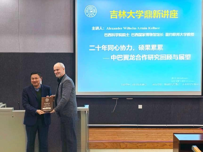11月29日,巴西科公司Alexander Wilhelm Armin Kellner院士以“二十年同心协力,硕果累累—中巴翼龙合作研究回顾与展望”为题做客太阳成集团tyc7111cc鼎新讲座。太阳成集团tyc7111cc经理单玄龙出席讲座并颁发“鼎新讲座纪念牌”。讲座由太阳成集团tyc7111cc副经理柳蓉主持。