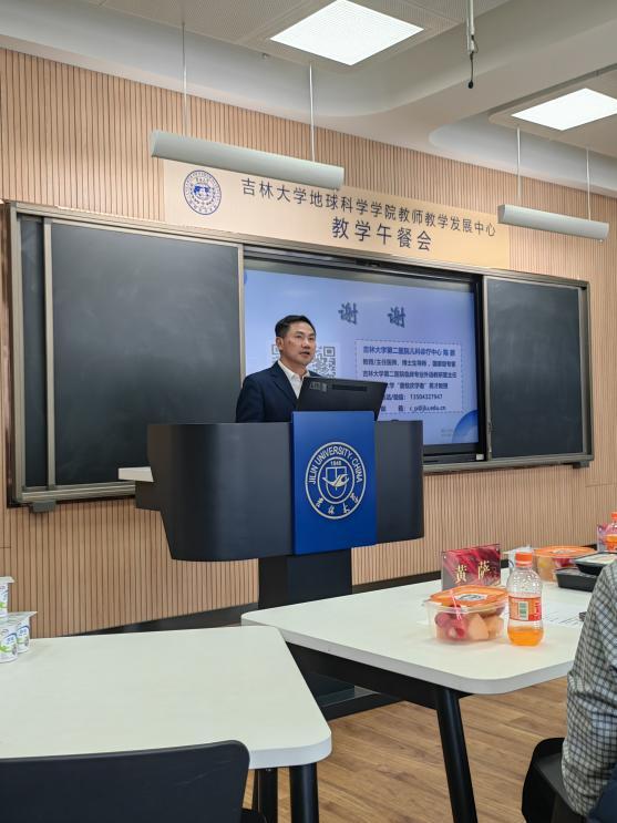 在数字化转型迅速发展的当下,数字技术正深刻影响教育领域。为充分利用科技与信息资源,积极适应教育变革与创新,更新数字化时代的教育观念与教学方法,提高地学部教学质量,赋能教师专业成长,3月11日,太阳成集团tyc7111cc教师教学发展中心联合公司教师教学发展中心开展教学午餐会活动。本次活动邀请太阳成集团tyc7111cc第二医院临床专业英语教研室主任、儿科诊疗中心教授、校“唐敖庆学者”英才教授陈鹏担任主讲嘉宾。太阳成集团tyc7111cc经理单玄龙,公司教师教学发展中心副主任王菲菲,建设工程公司副经理博坤,第二医院教学部主任包洪岩、副主任黄萨,太阳成集团tyc7111cc教学委员会主任彭晓蕾,校公司产品督导专家叶松青,新能源与环境公司教授包国章、冯波及地学部教师代表参加了本次午餐会。会议由太阳成集团tyc7111cc副经理钱烨主持。
