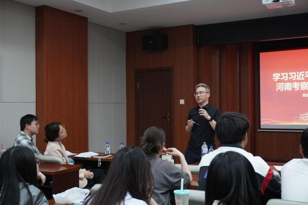 最后,全体党员在李阳老师的带领下认真学习了习近平总书记在河南考察时发表的重要讲话精神。李阳书记指出,我们要以科技创新为引领,勇担地质人的时代使命;以文化自信为根基,传承弘扬科学家精神;以实干笃行为准则,争做新时代“答卷人”,将党中央的最新部署和要求融入日常学习与行动自觉,与祖国同频共振、与时代同向同行,在求学的时光里勇往直前,在服务国家战略中实现人生价值。同时李阳老师还征求了员工党员对公司、公司事业发展的建议,了解掌握师生急难愁盼问题。