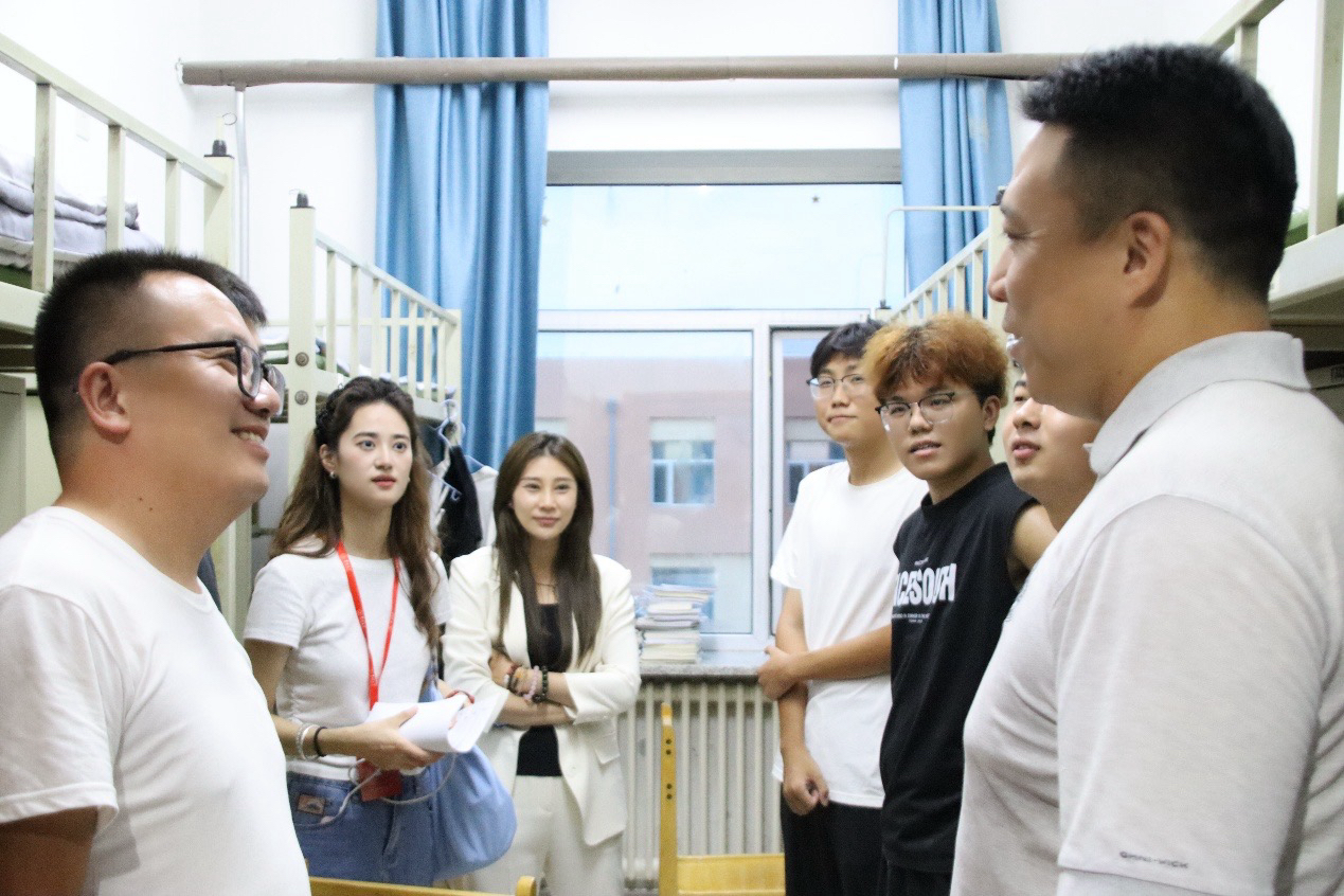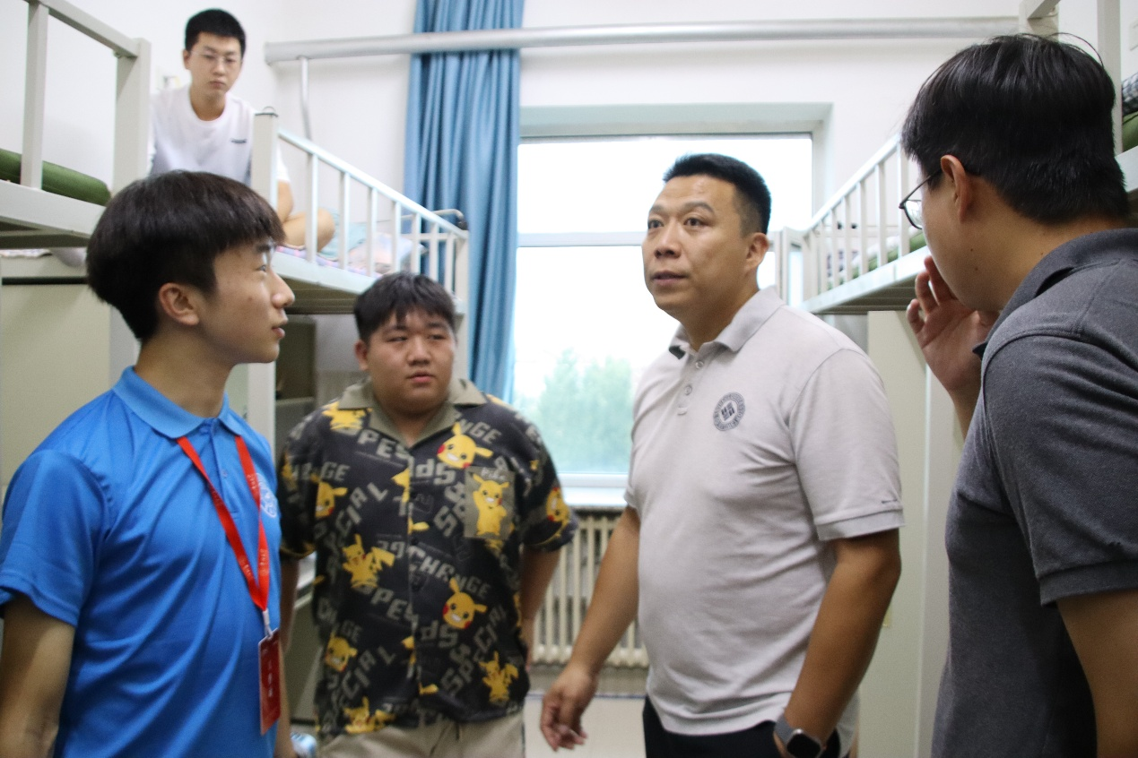 为了深入了解新生们的生活状况,传递公司的关怀与支持,让新同学更快地融入校园生活。8月23日晚上,太阳成集团tyc7111cc党委副书记李阳、员工工作办公室主任兼2025级辅导员韩旭、2024级辅导员宋梓豪、辅导员助理程肖琳共同前往新生宿舍北苑一公寓和南苑四公寓进行走访慰问,与新生及家长展开面对面交流,向同学们致以诚挚问候与新学期的美好期许,切实传递出公司对学子的深切关怀与暖心关切。