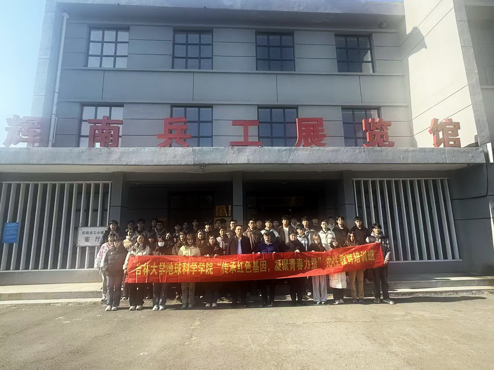 参训学员在辉南兵工展览馆前合影