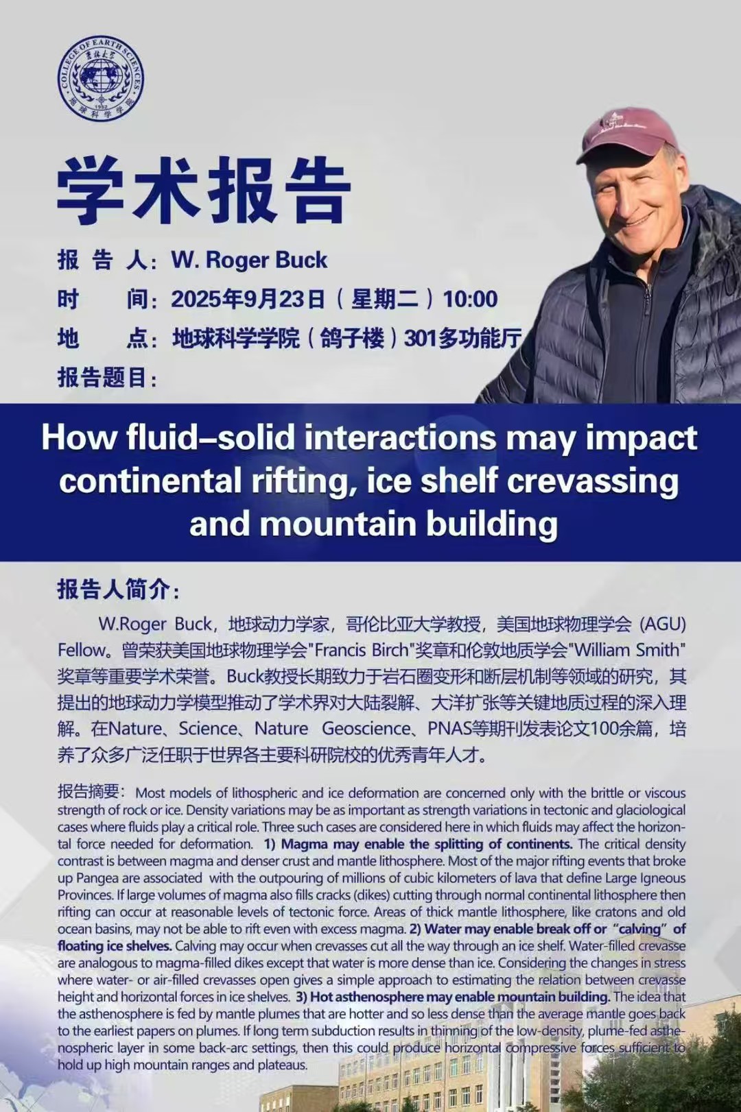 美国哥伦比亚大学W.Roger Buck教授学术报告