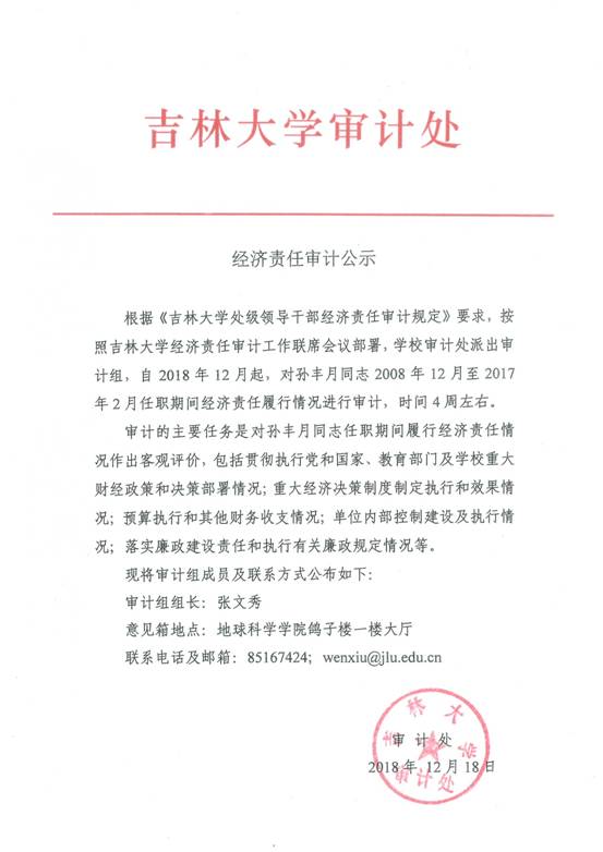 关于孙丰月同志离任经济责任审计公示