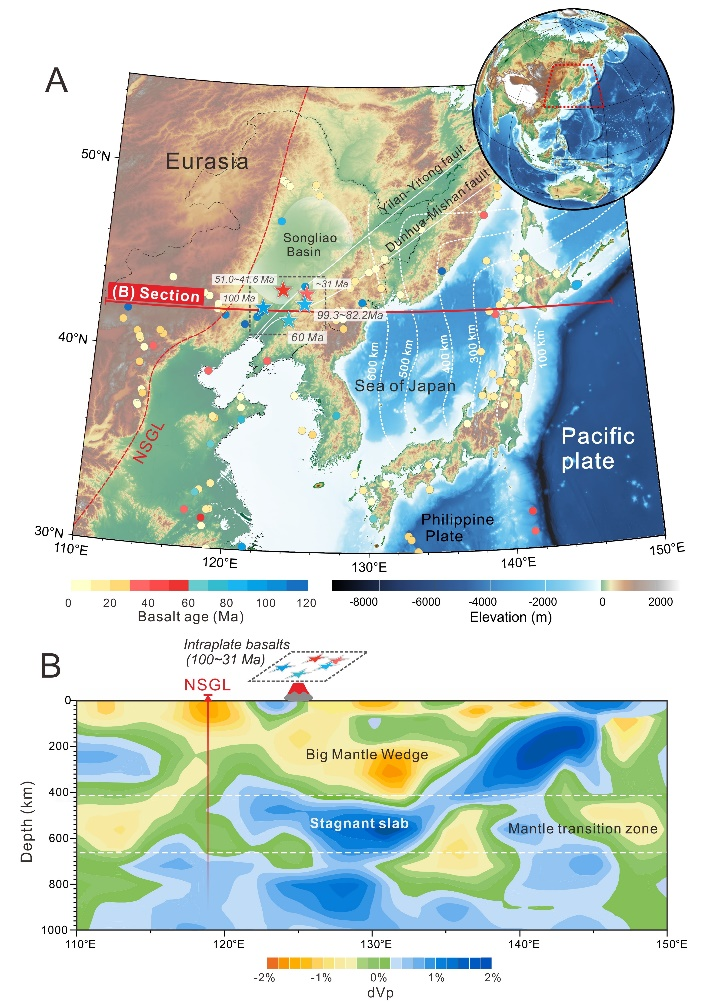 针对以上问题,公司许文良教授引领的“地球深部动力学创新团队”成员王枫教授等,通过对比分析西太平洋俯冲-滞留板块俯冲碳通量及其主要贡献储层随时间演化,与东北亚晚中生代-新生代早期板内玄武岩(图1)所记录的再循环碳量及其来源随时间演化之间的相关性,限定了与滞留板块相关的深俯冲碳循环的时间。具体研究成果如下: