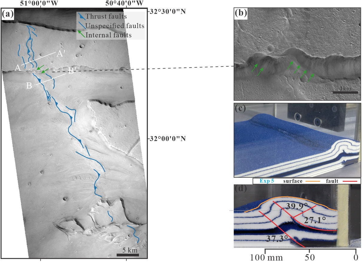 [1] Zhao, Z., Li, S., Sun, C., Wang, H., Wang, W., & He, X. (2025). Formation of Martian wrinkle ridges: New insights from analog experiments on décollement processes. Journal of Geophysical Research: Planets, 130, e2024JE008720. https://doi.org/10.1029/2024JE008720