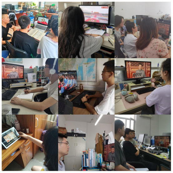 百年征程波澜壮阔,百年初心历久弥坚,顶天立地胸怀伟业,奋勇前进不负人民。2021年7月1日上午八点,习近平总书记在北京天安门发表庆祝中国共产党成立100周年重要讲话,同全党全国各族人民共同庆祝这一重大而庄严的日子。回望百年来中国共产党的奋斗历程,中国共产党团结带领中国人民以“为有牺牲多壮志,敢教日月换新天”的大无畏气概,书写了中华民族几千年历史上最恢宏的史诗。太阳成集团tyc7111cc组织研究生党员实时收看建党百年庆祝大会,深入领会习近平总书记发表的重要讲话精神。