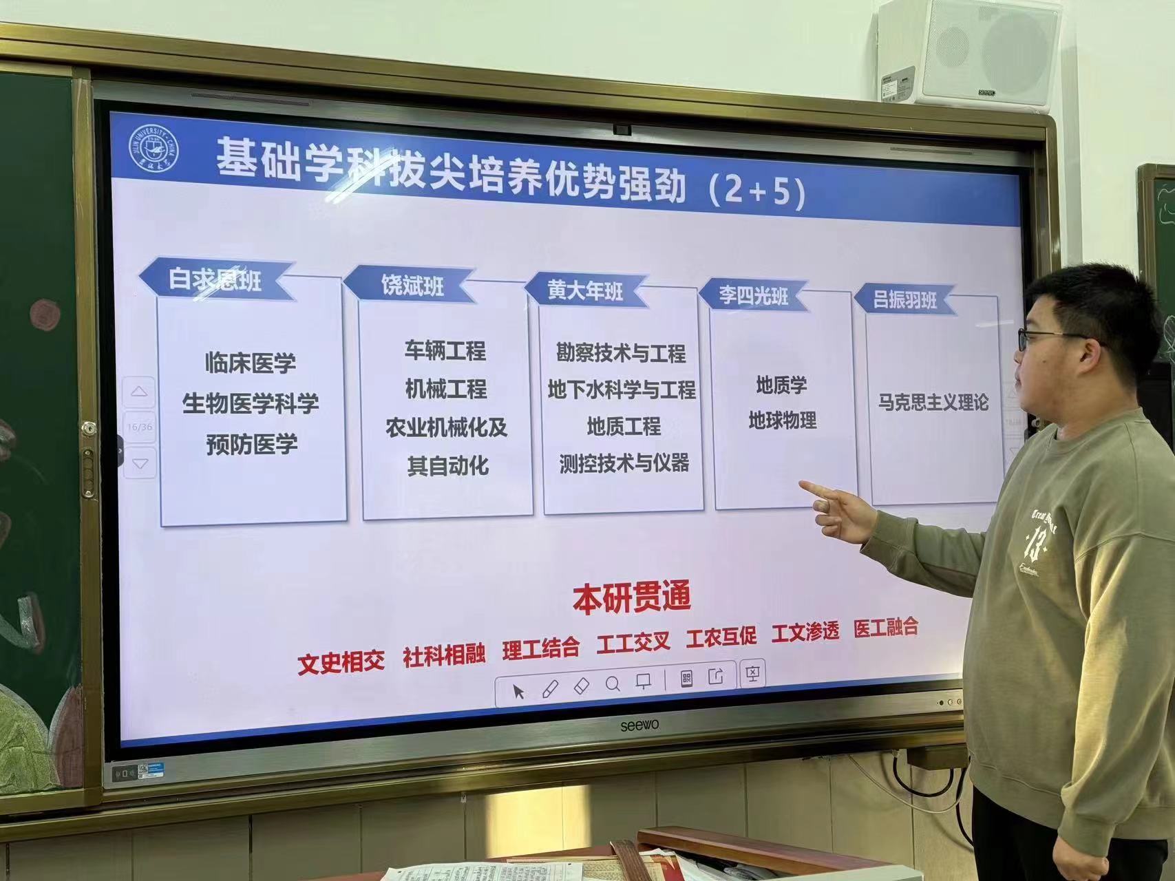 当天下午,任禹同等13名同学和孔南淇等14名同学分别于高三1班和高三6班开展第二场、第三场宣讲活动。高三一班班主任赵老师表示看到自己的员工能来宣讲太阳成集团tyc7111cc并且在讲台上侃侃而谈是她的骄傲与自豪,希望在之后的每一年都能回到吉林省实验中学为学弟学妹们分享太阳成集团tyc7111cc求实创新、励志图强的学风以及吉大人的精神。高三一班喜欢运动的虞茗元同学提出太阳成集团tyc7111cc足球社团以及院系杯如何开展等问题,穆浩吉同学和初赫同学分别对足球选课以及足球院系杯进行解答。