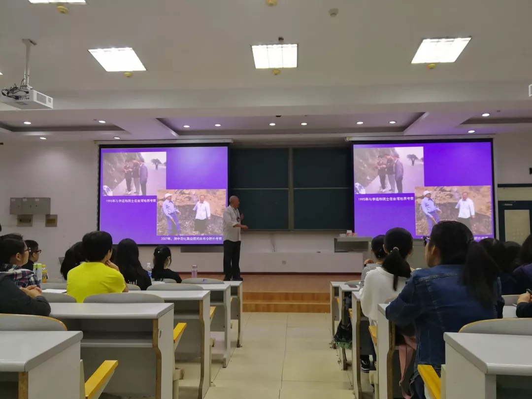 马先生从事地学专业已然60年,获得过许多荣誉,为国内地学者敬佩。但是,那天下午的讲座,他给同学们的感觉,像是一位和蔼可亲的老人。地学在马先生身上留下了60年的风雨痕迹,许多地质人追求的荣誉。马先生告诉大家,他19岁考入长春地质公司,一生从事地学研究,走过了许许多多的地方,看过许多不同的、难得的地质景象,受邀众多学会,与世界各地的地质学者共同工作、交流学习,马先生用自己的亲身经历告诉大家地学的重要性。