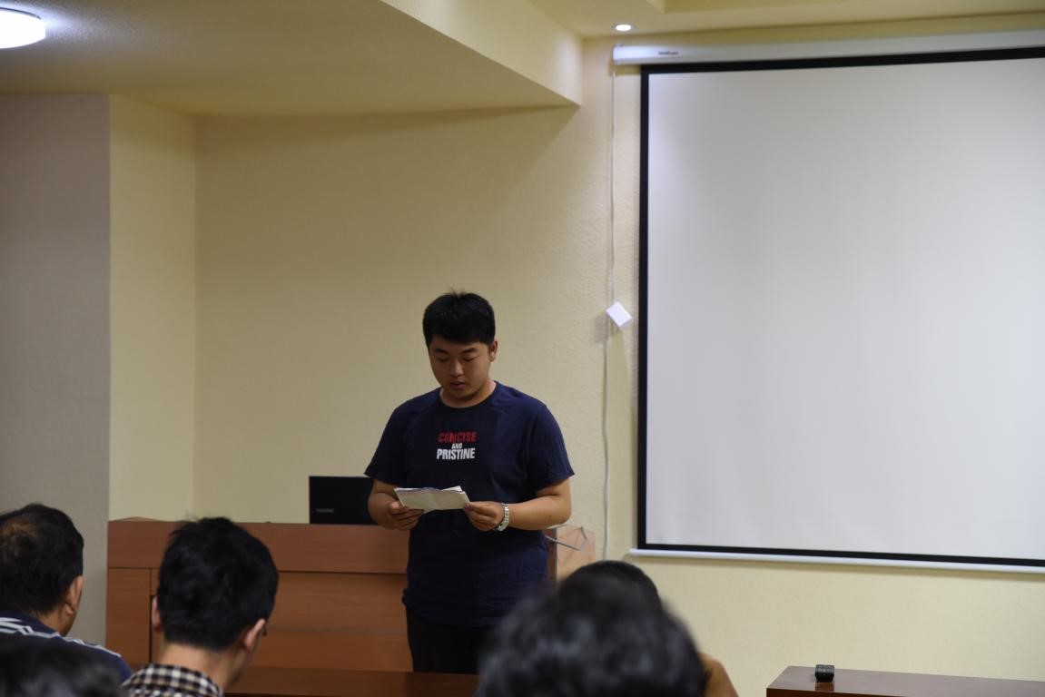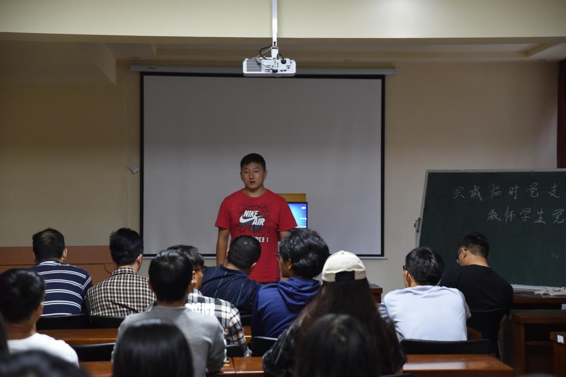 随后,由四名员工预备党员进行思想汇报。预备党员员工代表是地科16级4班吴浩然,1班田哲源,7班冯杨,7班赵强依次进行思想汇报。汇报主要从员工自己出发,浅谈近段时间的自身情况,表达自己身为预备党员要起到带头作用,也应该将自己学到的地质专业知识运用到实际生活中,由专业实习联系到自己,实习的过程其实是对自己世界观的培养。作为预备党员,最应该的就是将自己做好,将学习学好,保证野外卫生等方方面面的小事更能证明作为员工党员的觉悟。