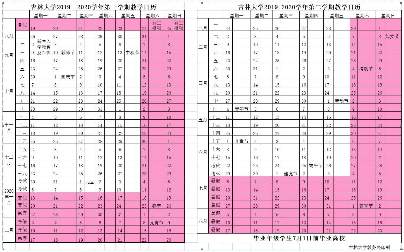 2019-2020教学日历