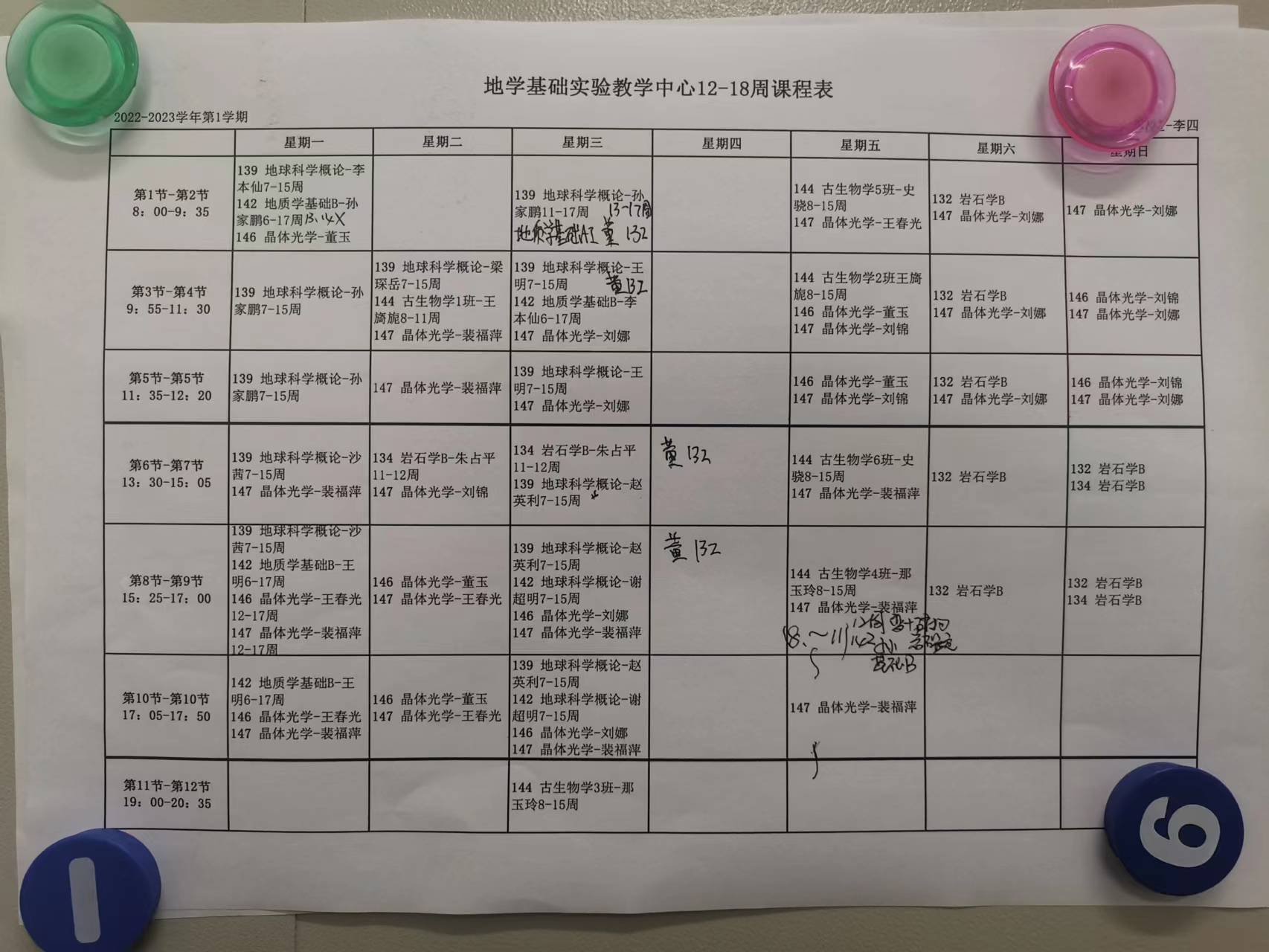 2022-2023学年第一学期(2022秋)12-18周实验课表