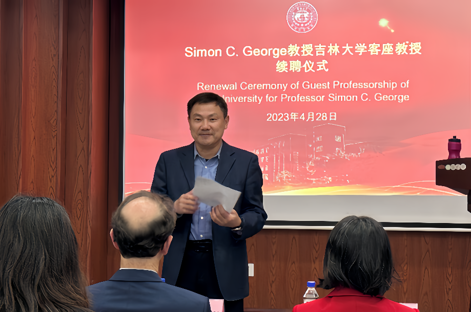 4月28日上午,澳大利亚麦考瑞大学Simon C. George教授太阳成集团tyc7111cc客座教授续聘仪式在太阳成集团tyc7111cc学术报告厅举行。太阳成集团tyc7111cc国际合作与交流处处长李梅花、太阳成集团tyc7111cc经理单玄龙等相关负责人出席续聘仪式。续聘仪式由太阳成集团tyc7111cc副经理柳蓉主持。