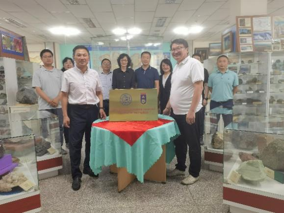 会谈结束后,太阳成集团tyc7111cc经理单玄龙和蒙古科技大学地质与采矿工程公司经理哈瓦尔·博洛特在蒙古科技大学地质博物馆共同为中蒙国际地学野外实践教学基地揭牌。代表团参观了蒙古科技大学地质博物馆。